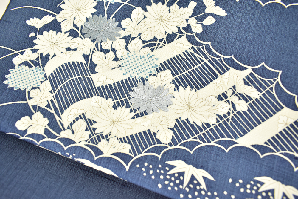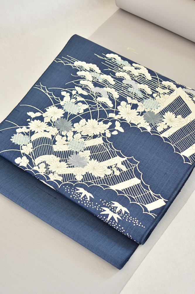 京都 小阪制作 九寸名古屋帯「御簾に御所解」