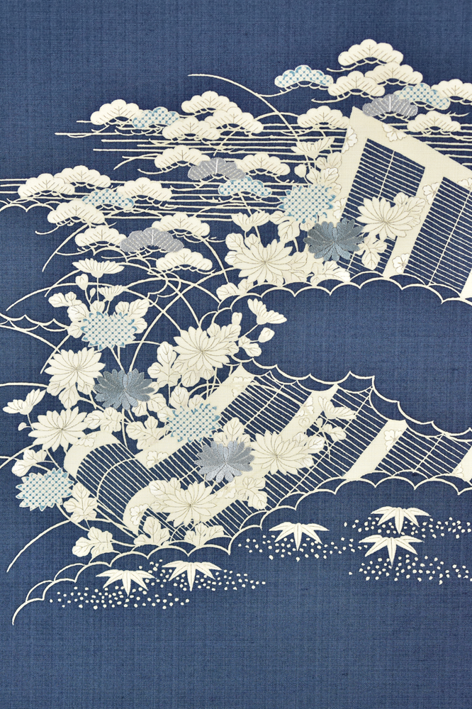 糊糸目で白く表現された松や菊には所々胡粉が施されております。