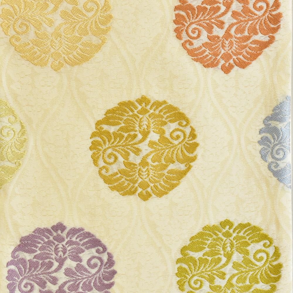 雲立枠に唐花と公家装束の代表的なお柄にみられる有職文様の美をご堪能くださいませ。