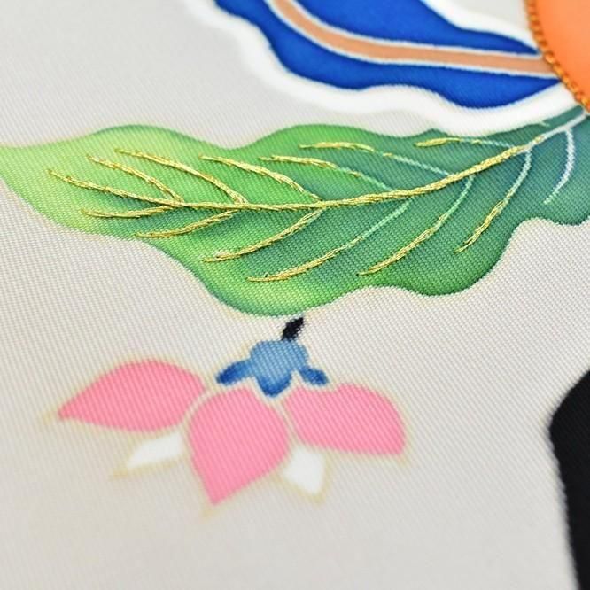 そんな「大彦」のきものを踏襲する「大羊居」は、野口功造の言葉「なんだってキモノの柄になる」をモットーとし、その独創的で美しい染繍のきものは他に類を見ない、私たちを魅了するものです。