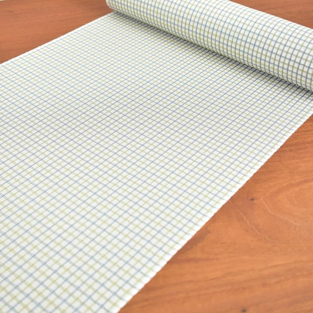 淡く色のある白鼠色に紫と淡黄緑の線が織り込まれております。