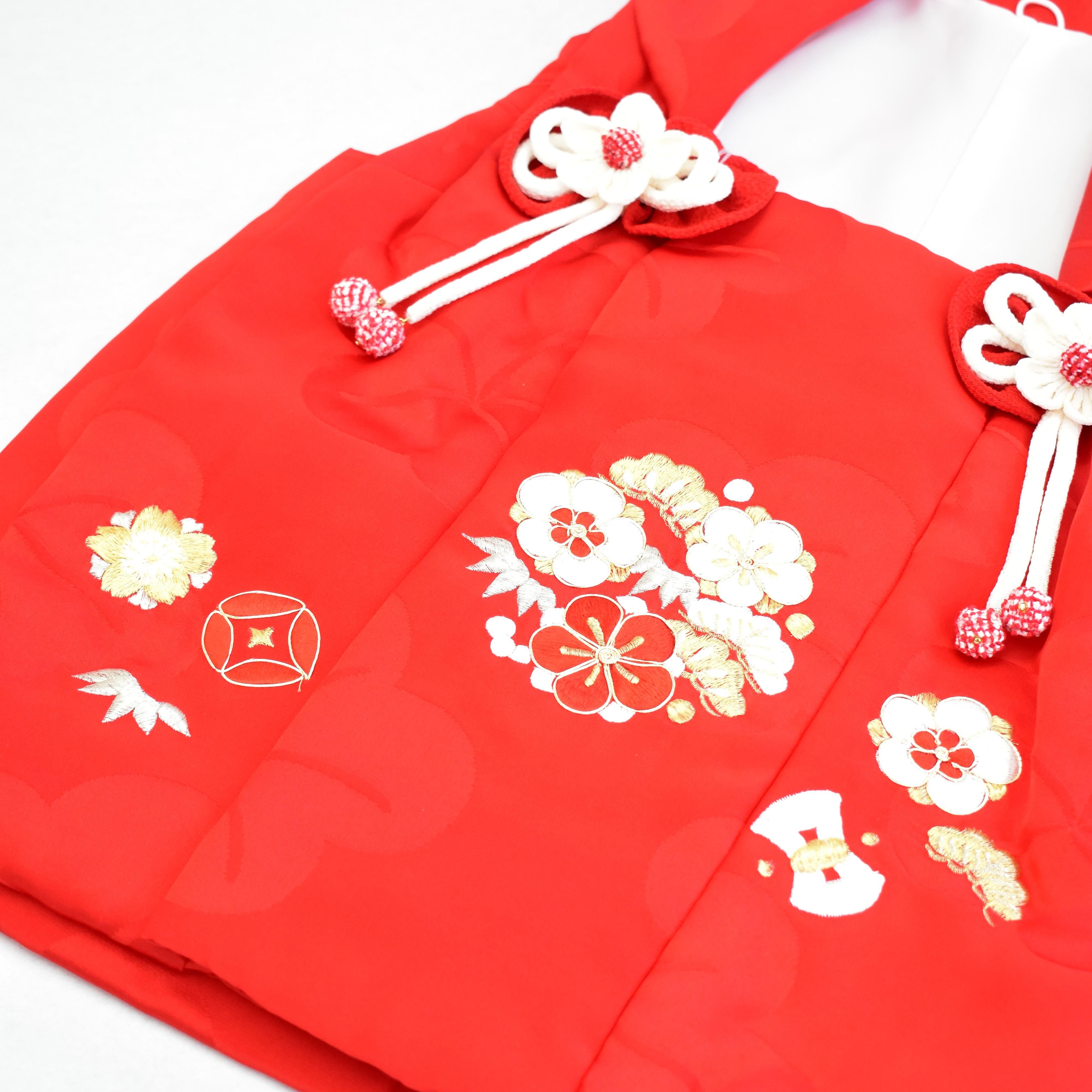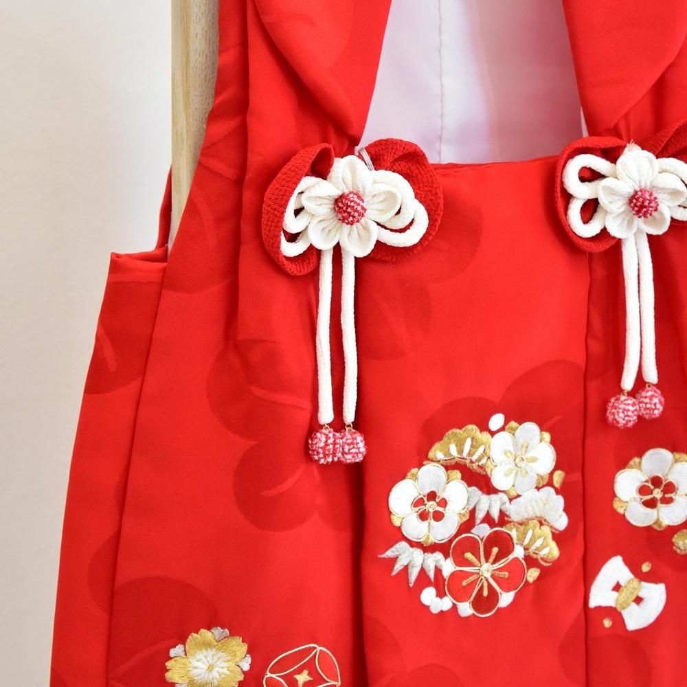 写真撮りなどで一番目立つのが被布の正面の柄となりますが、こちらの被布はたっぷりと刺繍が施され、雅やかな印象です。