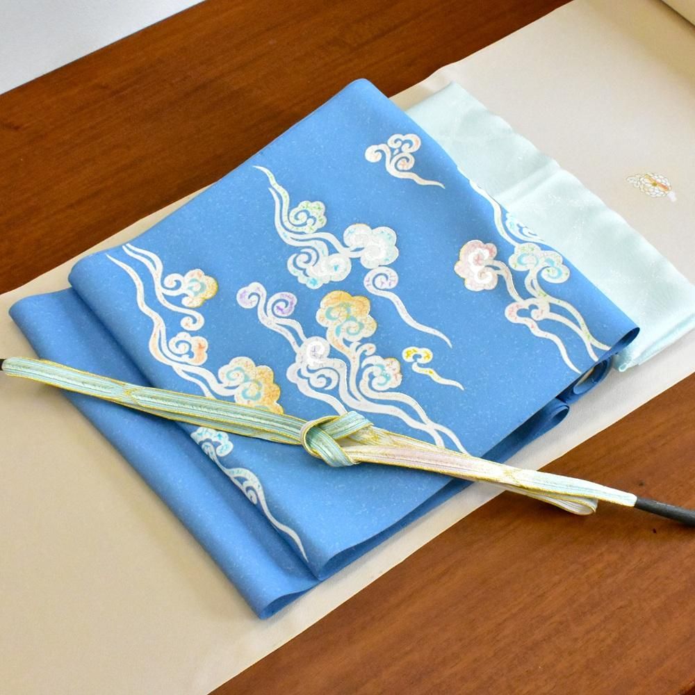 刺し色には爽やかな印象の水色やほんのりとピンク色が使われています。