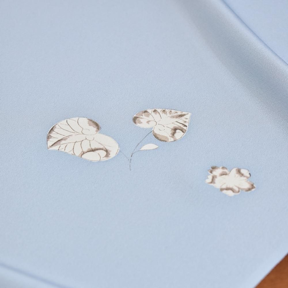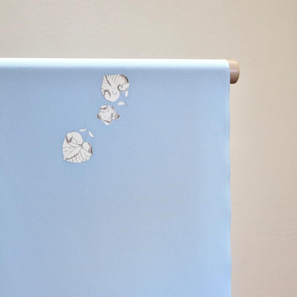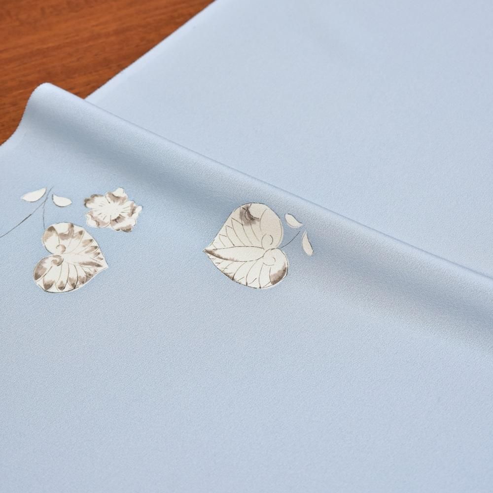 「三眠蚕糸」という上質な生糸を使った生地に清楚な地色を染めていただきました。